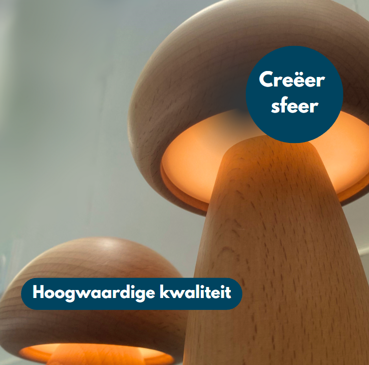 Onze oplaadbare Mushroom lamp voegt precies de juiste sfeer toe aan uw huis. Creëer een gezellig hoekje in uw woonkamer, slaapkamer, hal, op de eettafel, in de kast, op het nachtkastje of op een klein bijzettafeltje.