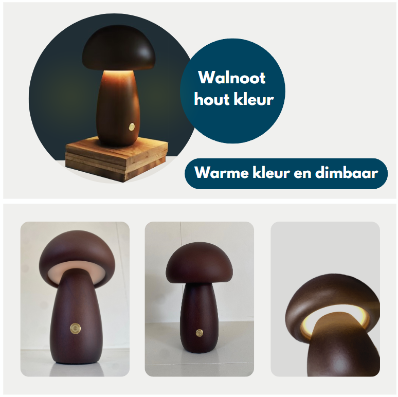 Onze oplaadbare Mushroom lamp voegt precies de juiste sfeer toe aan uw huis. Creëer een gezellig hoekje in uw woonkamer, slaapkamer, hal, op de eettafel, in de kast, op het nachtkastje of op een klein bijzettafeltje.