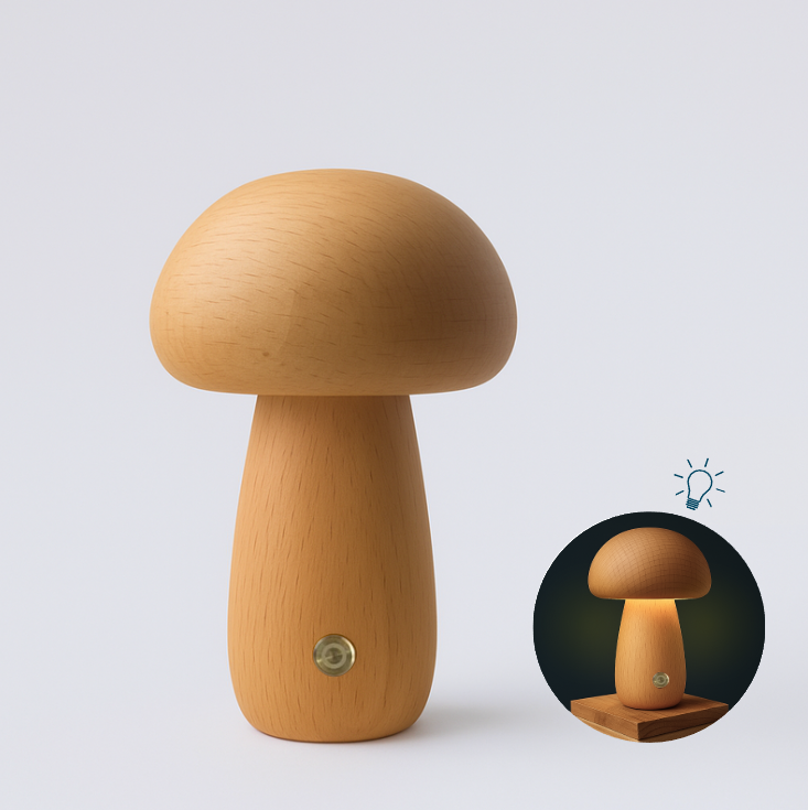 Dankzij het tijdloze en elegante ontwerp voegt de houten paddestoel lamp een extra touch toe.