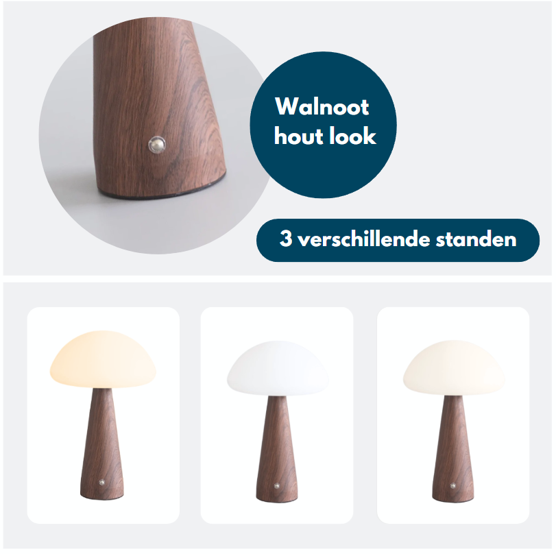 Onze oplaadbare Mushroom lamp brengt precies de juiste sfeer in uw huis. Creëer een gezellig hoekje in de woonkamer, slaapkamer, hal, op de eettafel, in de kast, op het nachtkastje of een klein bijzettafeltje.