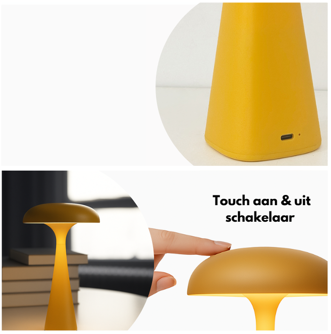 Onze oplaadbare Mushroom lamp voegt precies de juiste sfeer toe aan uw huis. Creëer een gezellig hoekje in uw woonkamer, slaapkamer, hal, op de eettafel, in de kast, op het nachtkastje of op een klein bijzettafeltje.
